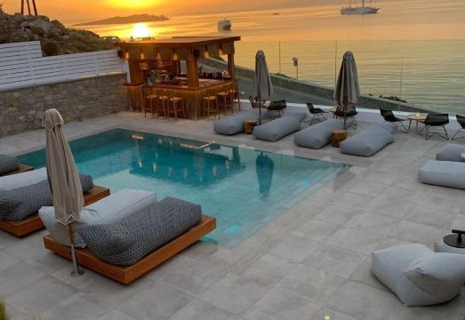 The view from the amazing pool area is outstanding: bay, beach, Mykonos town just a short walk away. Rooms are modern and comfortable (ours was internal but some have sea view). A great option for all Mykonos has to offer.