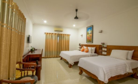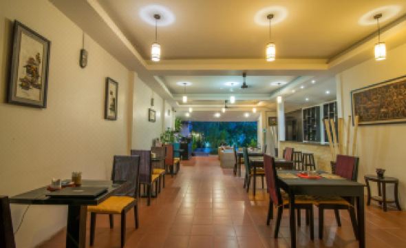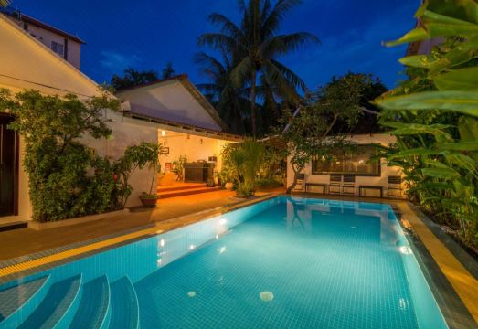 My husband and I stayed in Seam Reap for 3 nights at this boutique hotel, together with our daughter and her husband. The hotel environment is charming, with tropical plants and flowers bringing serenity to our stay. The rooms were very large, have one queen bed and another full bed. The bathroom and shower is spacious and clean. The rooms are called Villas. Rooms were cleaned every day. There’s a split unit AC for heating and cooling, which worked well. There’s a nice pool surrounded by tropical plants, it was a little too cold to bathe in January but I did enjoy it once. The reservation included breakfast, with several traditional or western meal choices prepared per request. Service was a little slow, it looks like they’re still figuring out their menu options. We got this for a great deal through booking, it cost us $61 per night per room with a special rate. The location is very good and we were easily able to travel to sightseeing and shows downtown with a tuktuk. The staff and the manager were helpful and friendly and would help in anyway they could. Overall, great experience!!!
